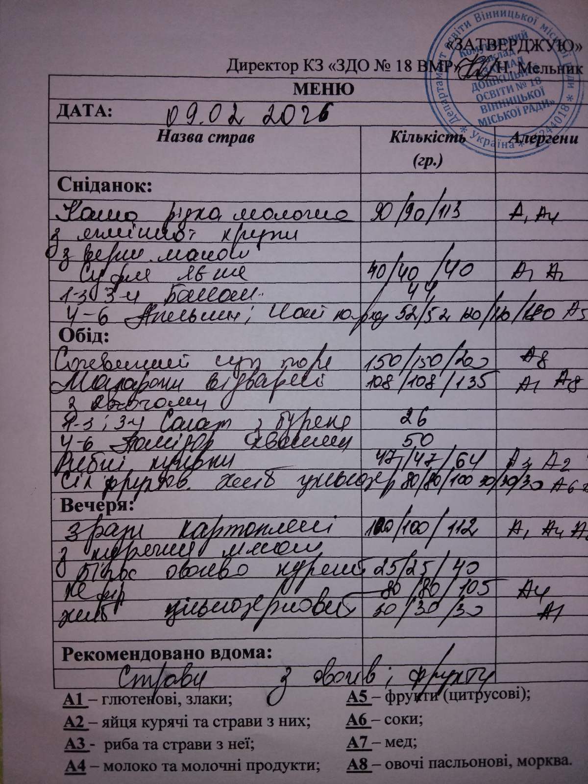 Щоденне меню